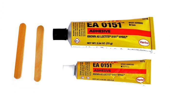 - Hysol Epoxy 3.4oz tube (F1707010) - 30 minute pot life, 24 hour Room Cure, 30 minute Heat Cure, 100°C Heat Temp, 10/case
